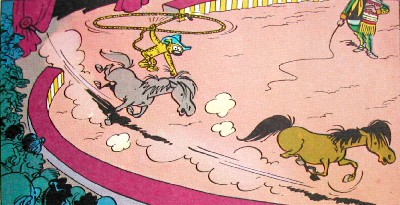 Los ladrones del marsupilamiDesaparece del zoo el Marsupilami y los responsables avisan a Spirou y Fantasio. Como el ladrón no puede haber abandonado el recinto, lo buscan hasta que, de noche, el rapidísimo ladrón los burla y se fuga. Pero siguen los indicios que tienen, averiguan a qué país se ha marchado, y van tras él. Descubren al responsable último del robo: el propietario de un circo, ansioso por exhibir al Marsupilami. Gracias a las pócimas del conde de Champignac, Spirou y Fantasio comienzan a trabajar en el circo.